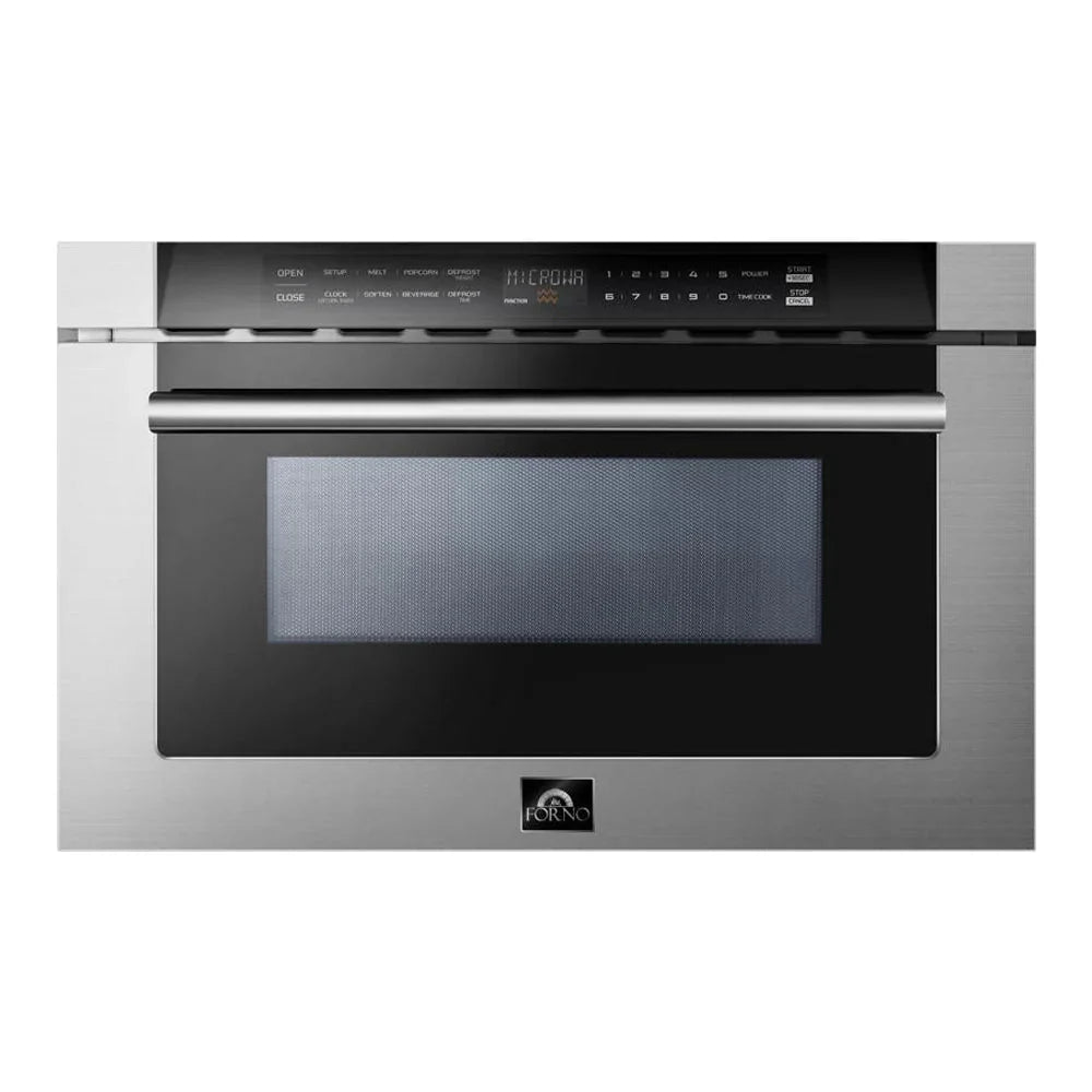 The Forno Capolivera 24-inch microwave drawer is designed for built-in installation under a counter or in a wall, providing a space-saving solution for everyday cooking needs. It offers a 1.2 cu. ft. interior capacity and 1,000 watts of cooking power for efficient heating and reheating.